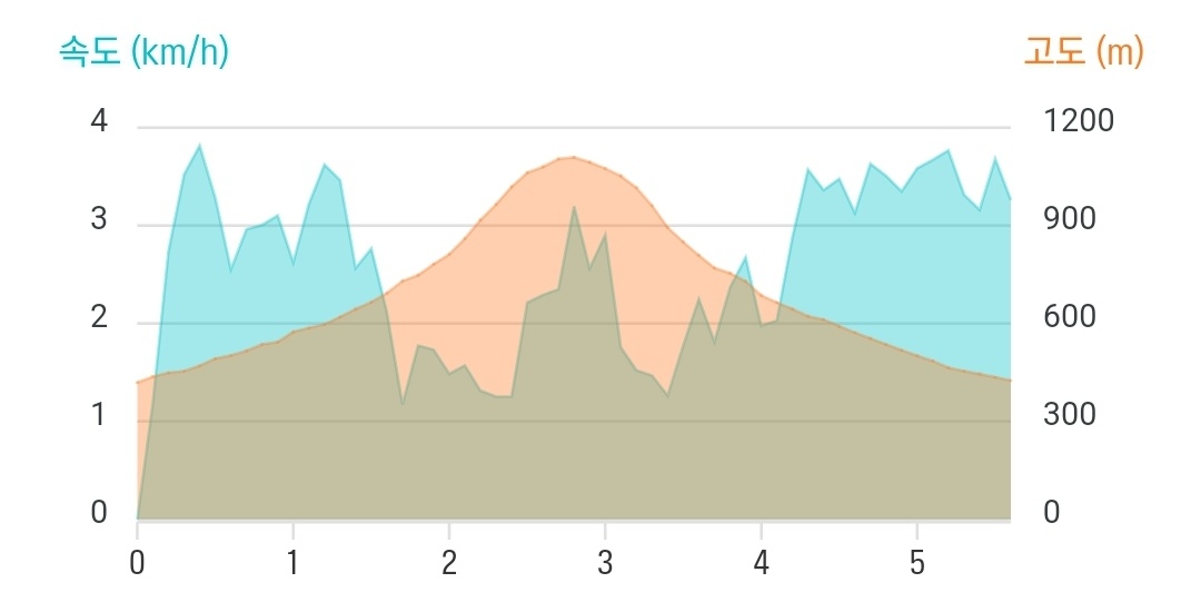 | 소요 시간 및 구간 정보 | 약 2시간 45분(휴식 10분) / 평균속도 2.2km/h / 누적고도 687m |