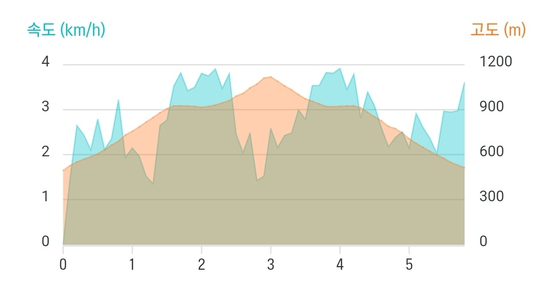 속도 고도 그래프를 보면 알 수 있듯이 완만한 등산 코스라