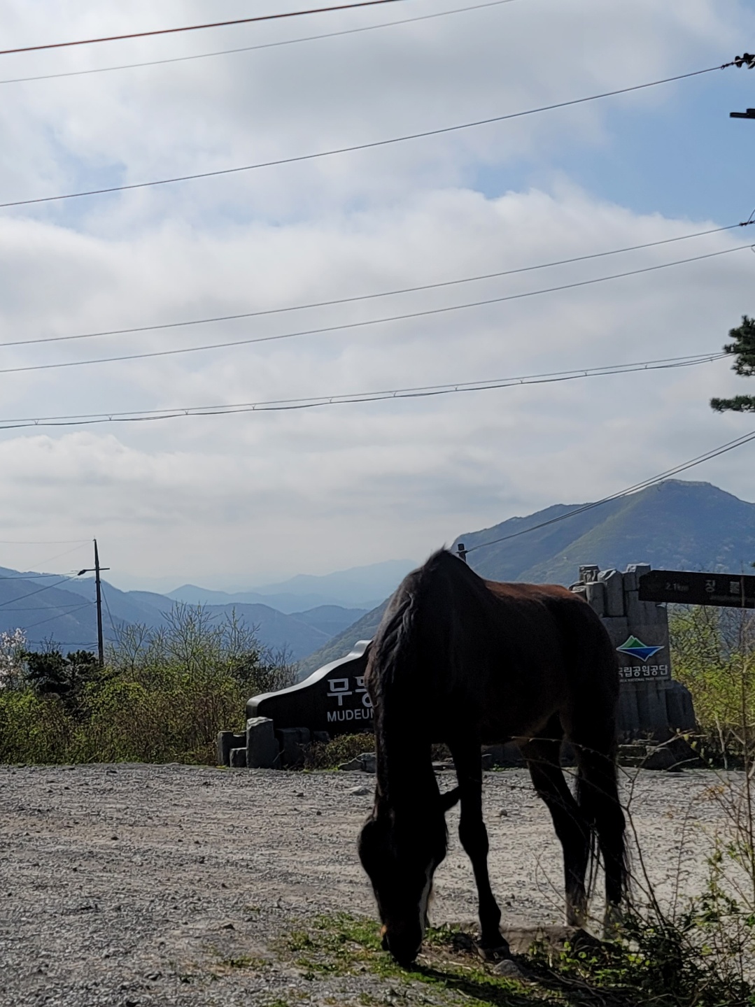 들머리 주차장 근처에 목장이 있나보다, 하산 후 차 근처에 말이 풀을 뜯고 있어도 놀라지 말 것..
